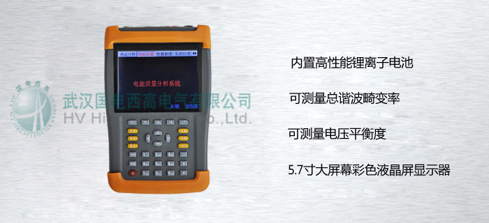 為了解決以上的問題,首先要能對以上現象進行準確的測量與分析,基于這樣的需求國電西高適時開發研制出GDPQ-300H 手持式諧波分析儀。這是一種集電能質量分析、電參量測試、電力矢量分析為一體的多功能測試儀器。該儀器配備高精度、高線性度的電壓互感器和電流互感器,使儀器對各種參量的測量精度很高,同時配有鉗形電流互感器,使得現場接線簡便。采用大屏幕進口彩色液晶作為顯示器,中文操作界面并配有漢字提示信息、多參量顯示的液晶顯示界面,人機對話界面友好,向量圖顯示及接線判斷為檢查電路的正確性提供了可靠的依據。儀器內置大容量掉電不丟失數據存儲器,可將現場校驗數據保存下來,可提供后臺微機管理軟件,將結果上傳至計算機,實現微機化管理。